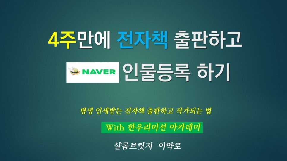 <특강> 4주만에 전자책 쓰고 작가되기-샬롬브릿지 이약로