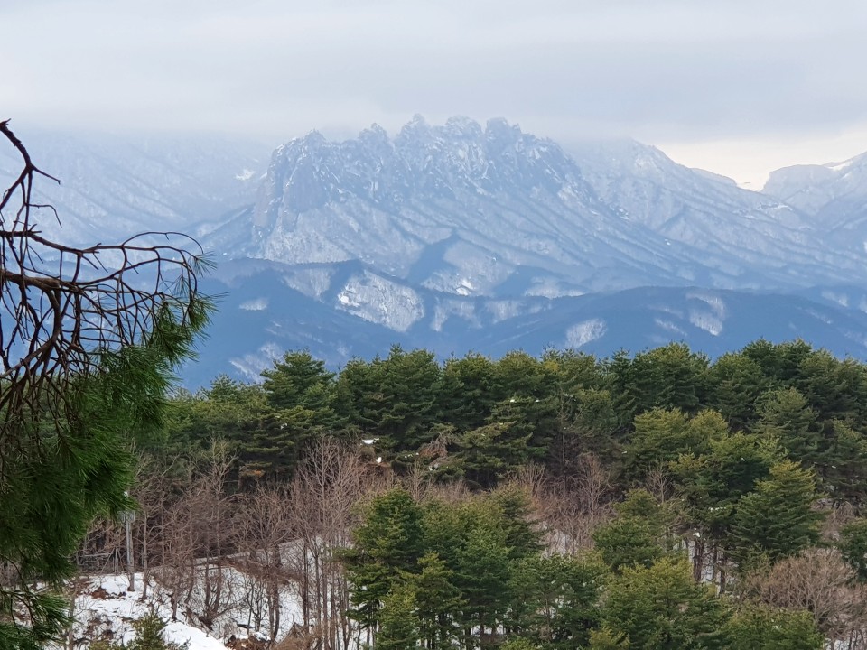 청대산에서 찍은 눈 쌓인 울산바위 모습