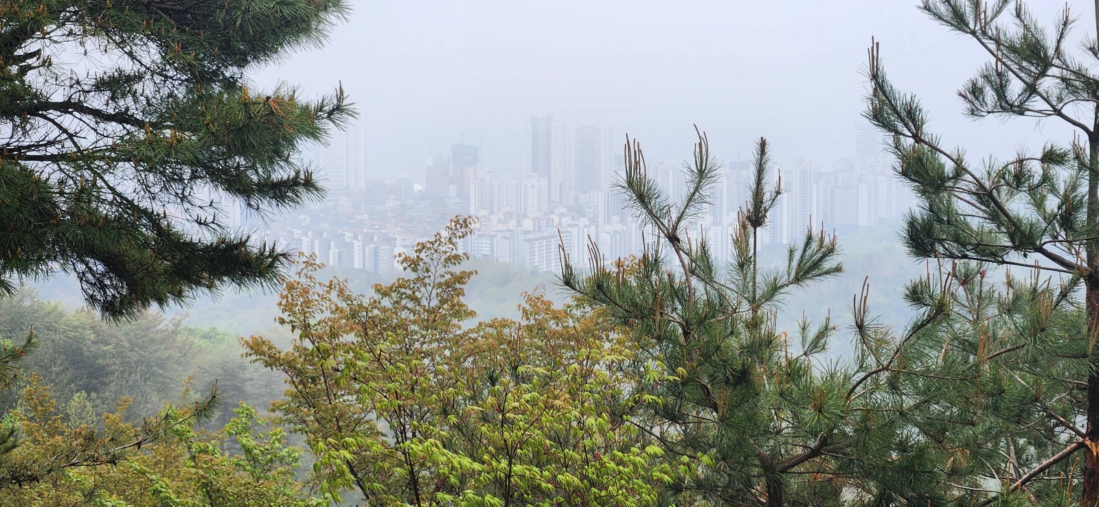 청대산에서 속초시내와 동해바다가 쁘옇게 보인다